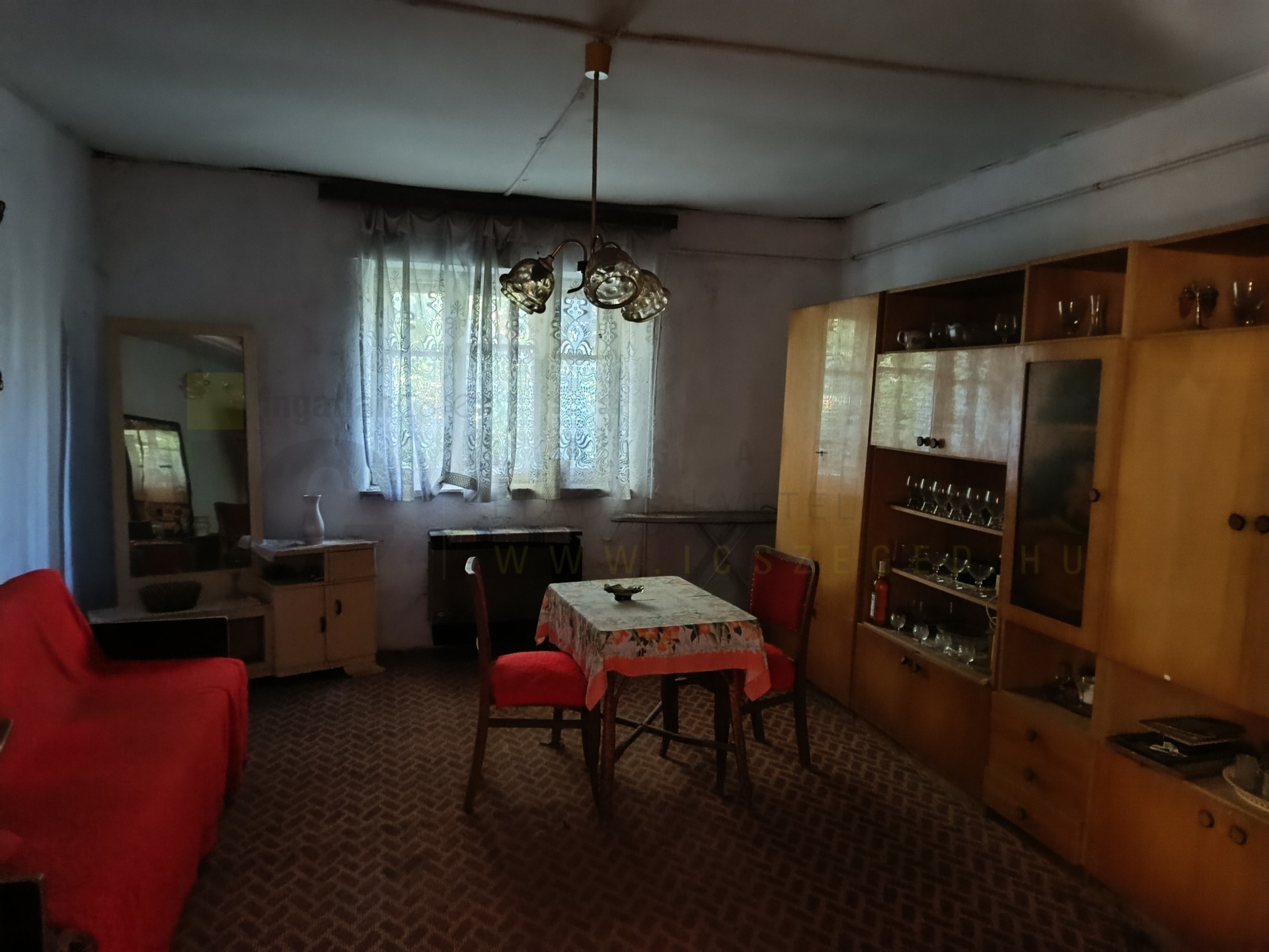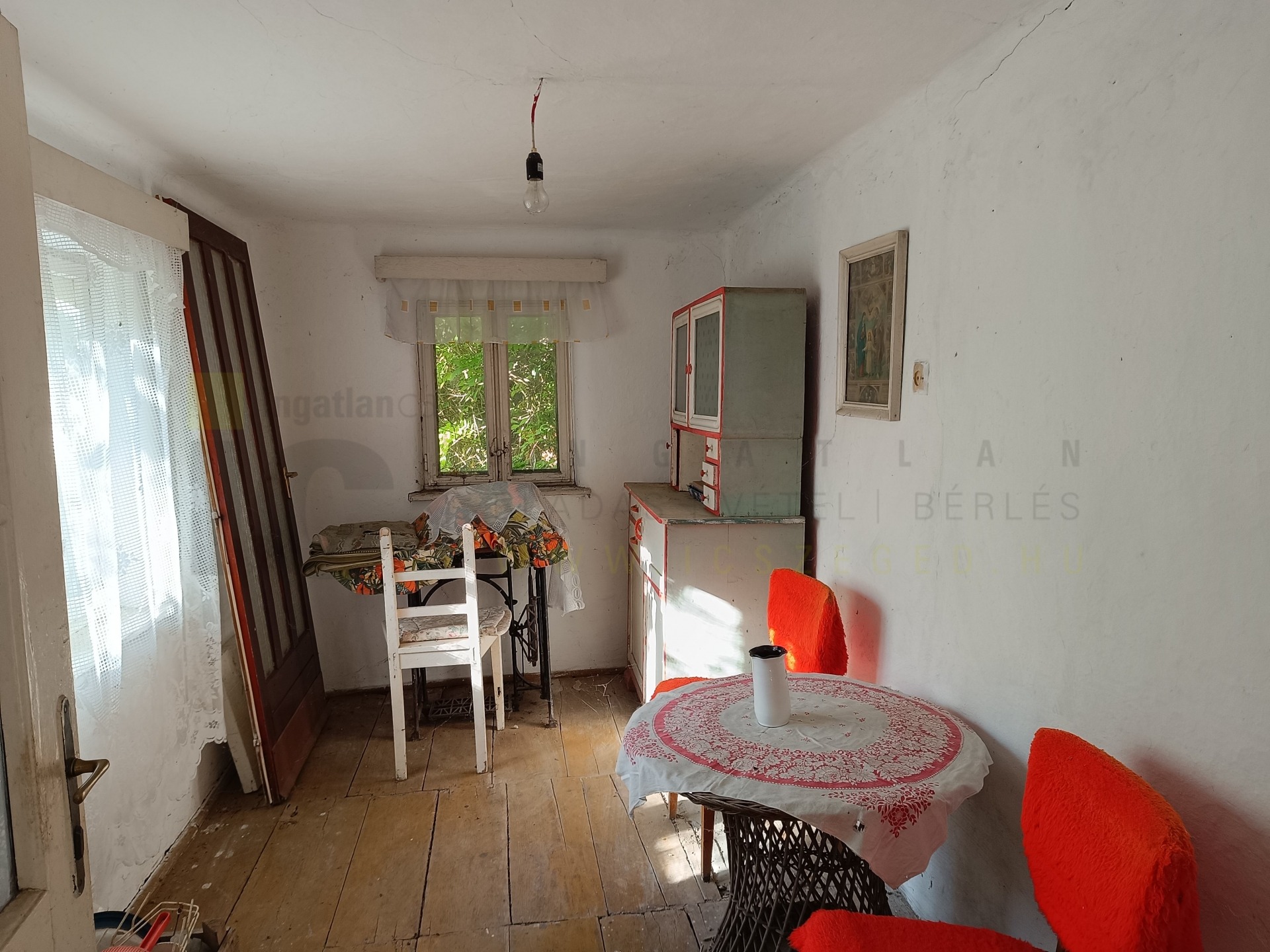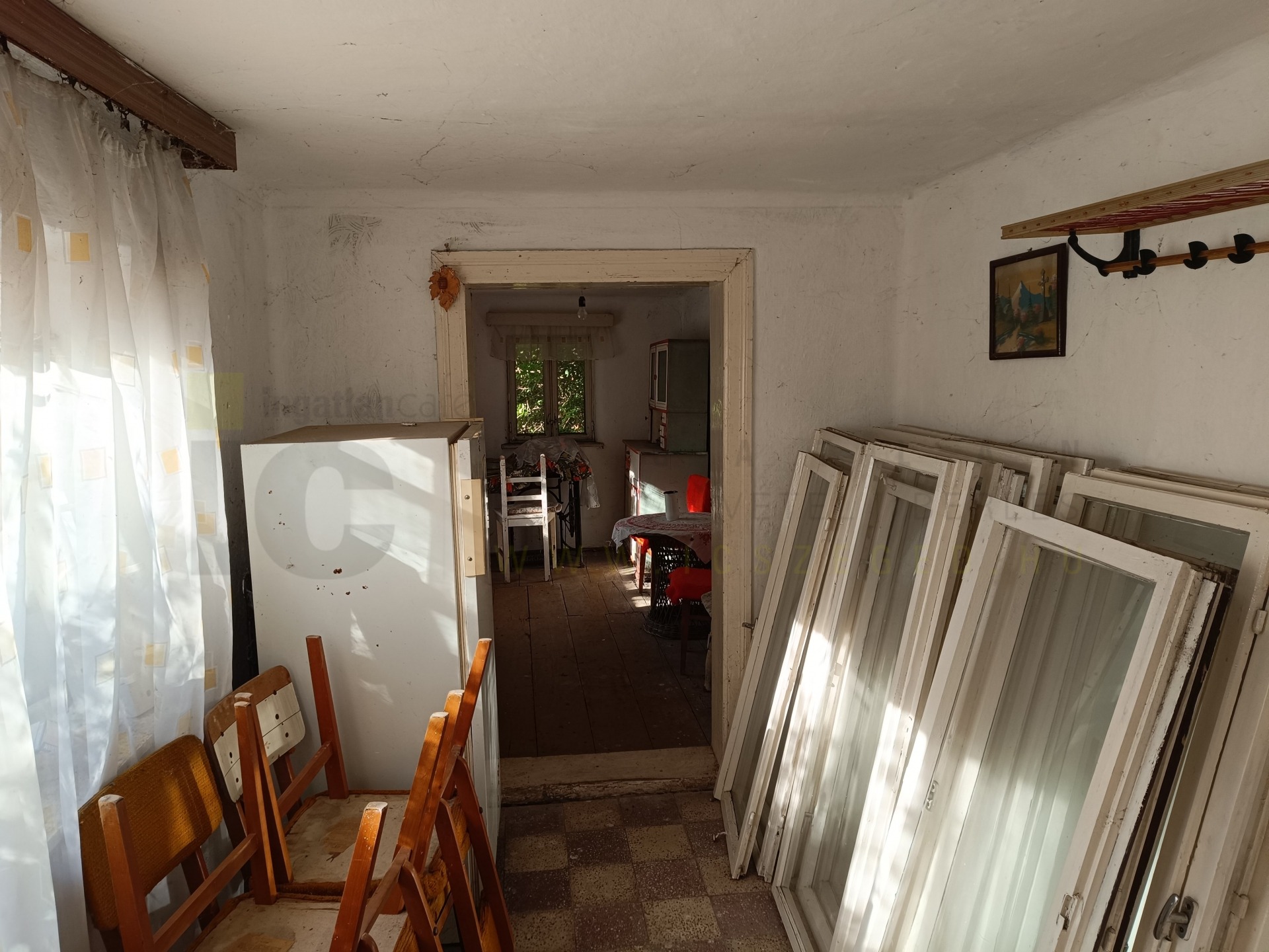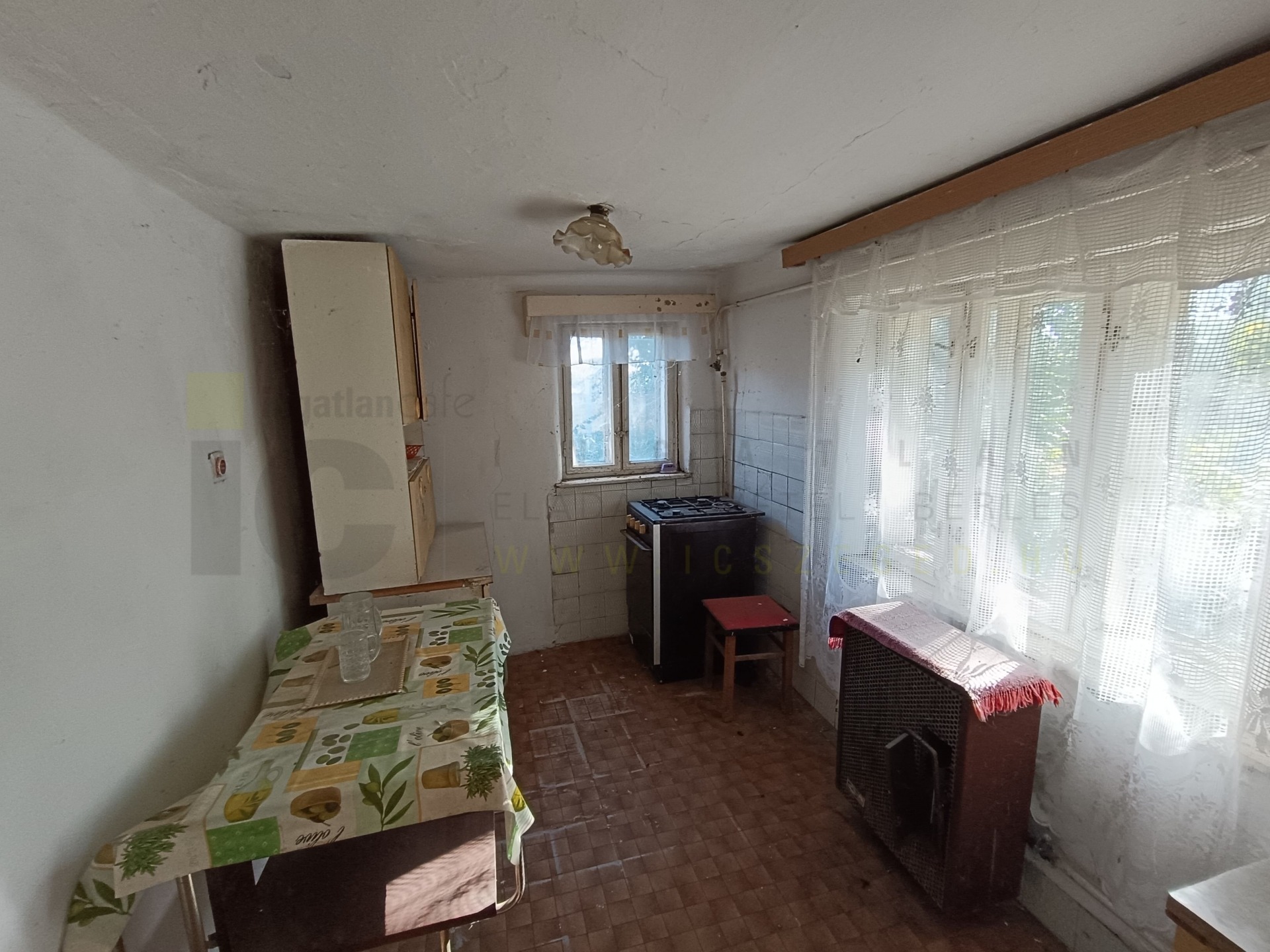 A lakóépület 3 egész, 1 fél szoba, konyha, fürdő, kamra helyiségekből áll jelenleg. Mivel az épület felújítandó ezek változtathatóak. A gázfűtés ki volt alakítva, konvektorokkal, jelenleg a gáz le van kötve, ahogyan az elektromos szolgáltatás is.