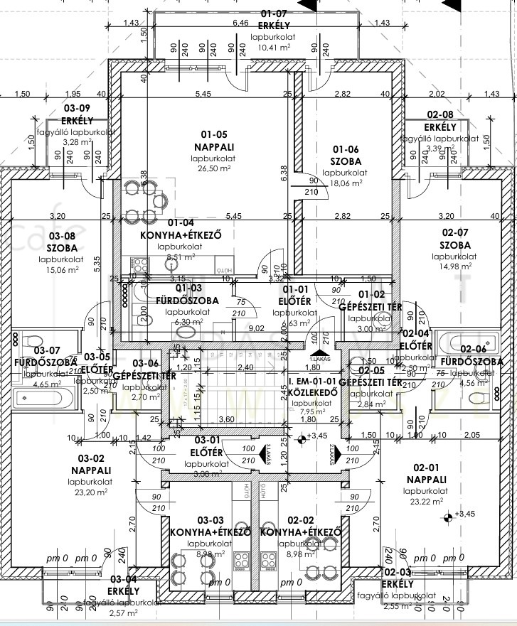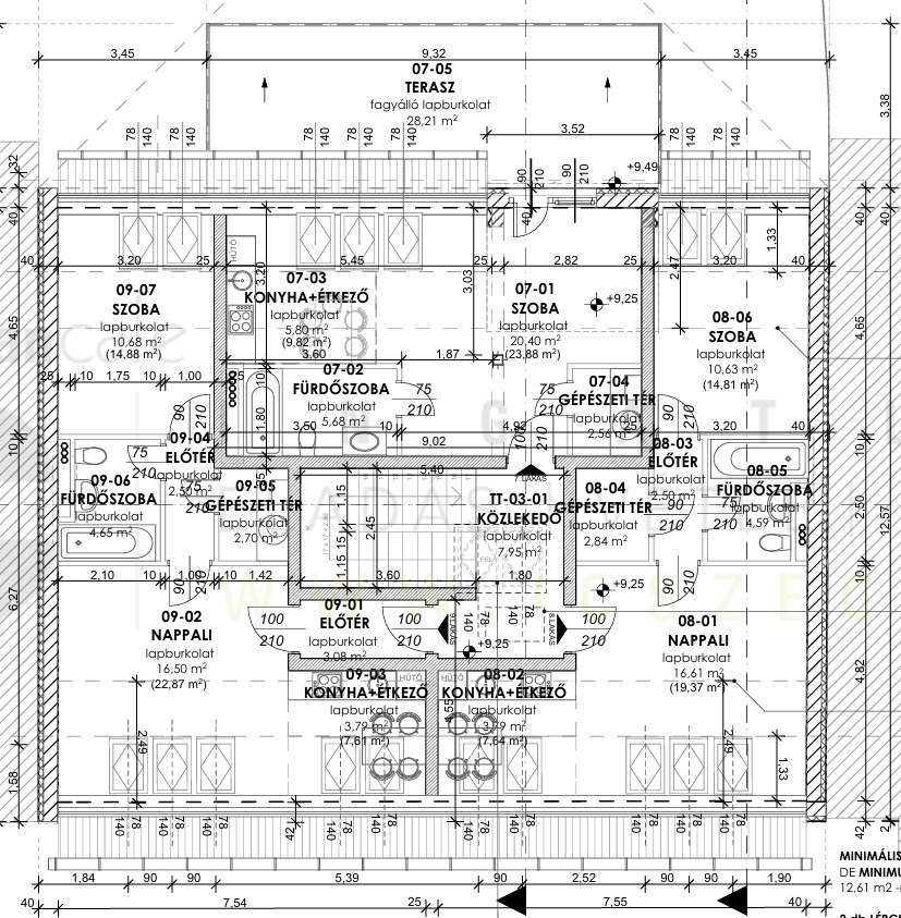 69,16 m2 lakás + (10,41/2 m2 erkély) = 74,365 m2 / 85 891 575,- Ft