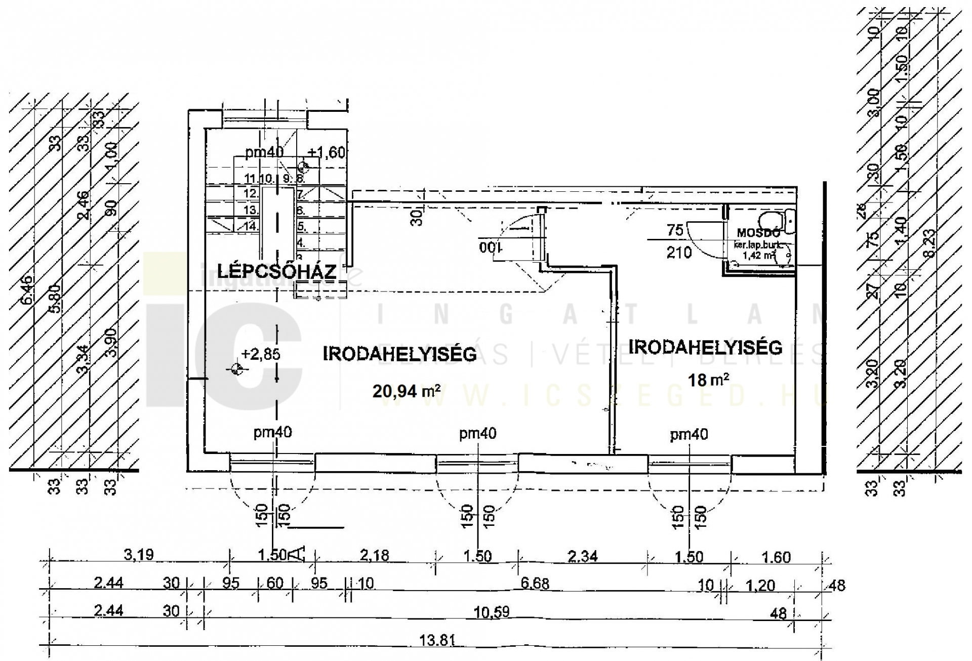 1. Irodahelyiség: 18 m2